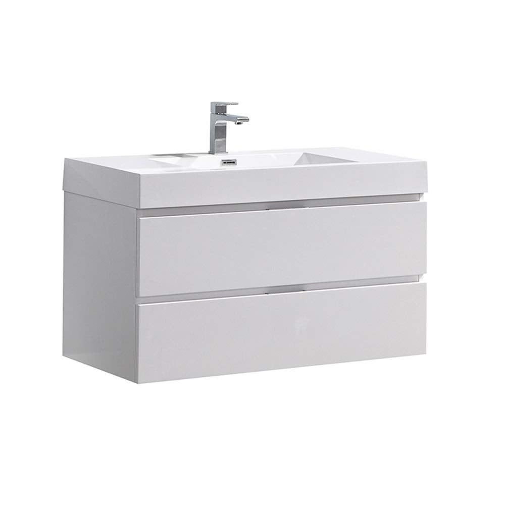 The Fresca Valencia Wall Hung Modern Bathroom Vanity adds a touch of modern elegance to any bathroom. We love how the gloss white finish and aluminum handles give it a polished look. The soft-closing drawers and doors are a great touch, making the vanity feel high-end and functional.