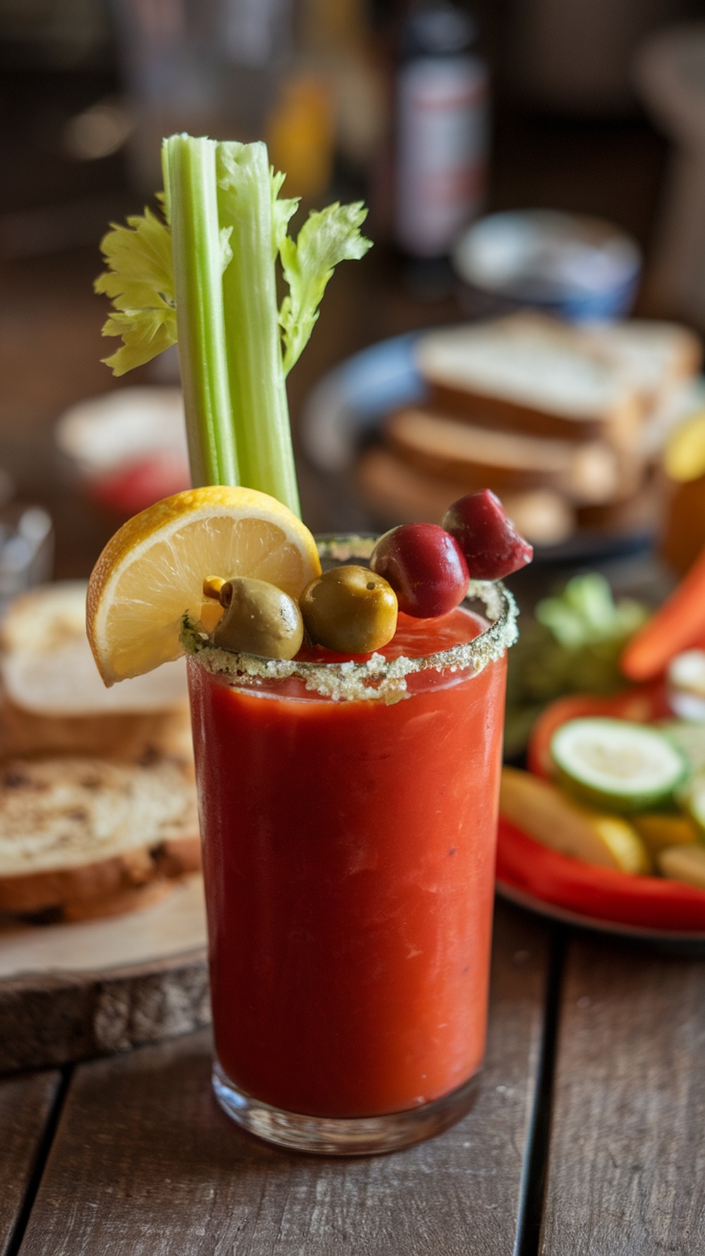 The Bloody Mary cocktail is a vibrant and iconic drink famously known for its robust flavors and unique ability to be personalized. This classic mix showcases a harmonious blend of savory and spicy ingredients, making it a favorite choice for brunch enthusiasts.