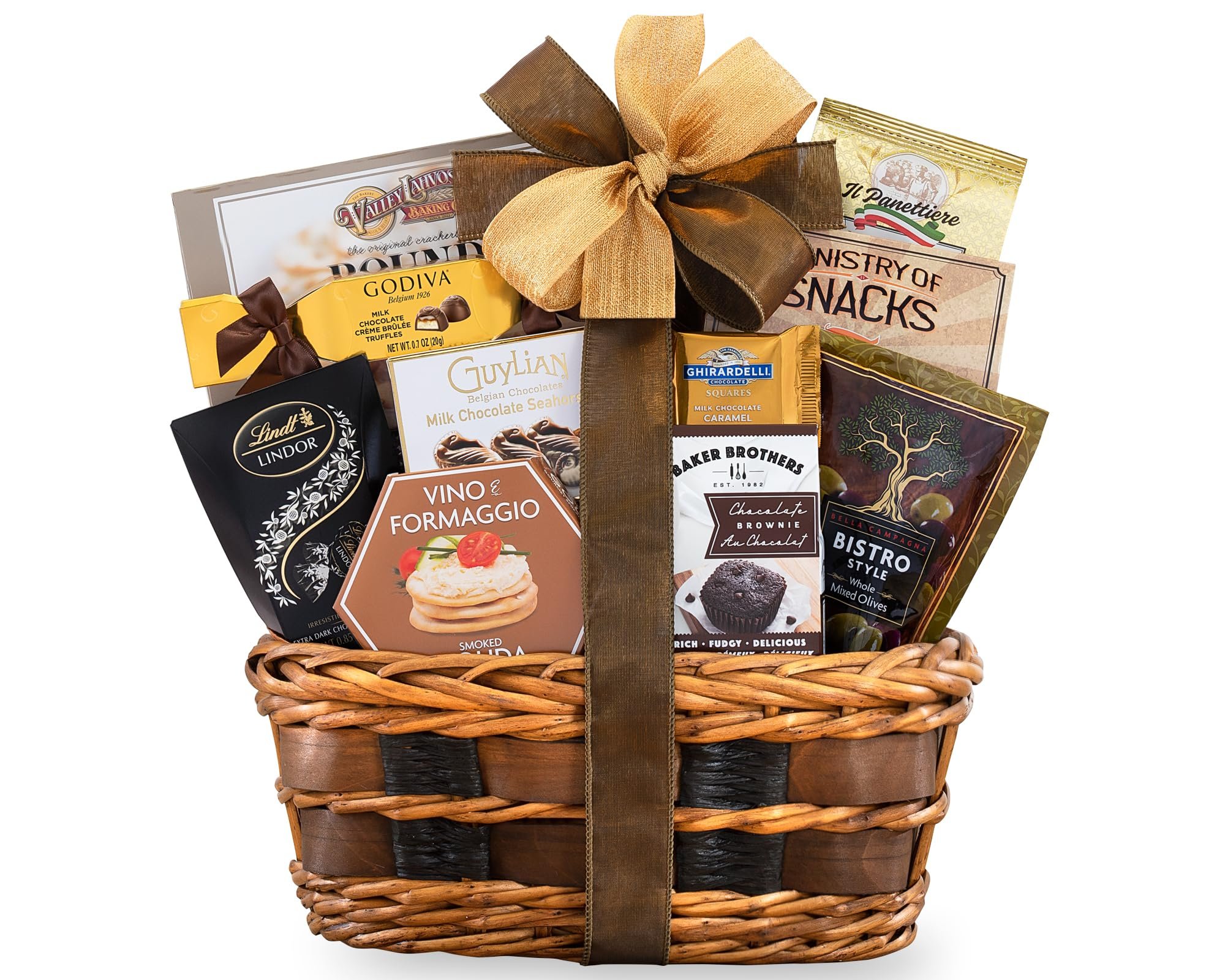 If you’re looking for a gift basket that offers a wide variety of sweet and savory treats, then the Bon Appetit Gift Basket by Wine Country Gift Baskets is definitely worth considering. The basket includes Godiva and Lindt milk chocolate truffles, bacon habanero bites, olives, sesame crackers, smoked Gouda cheese spread, Ghirardelli milk chocolate with caramel, Belgian milk chocolate seahorse truffles, almond cookies, and a chocolate brownie.