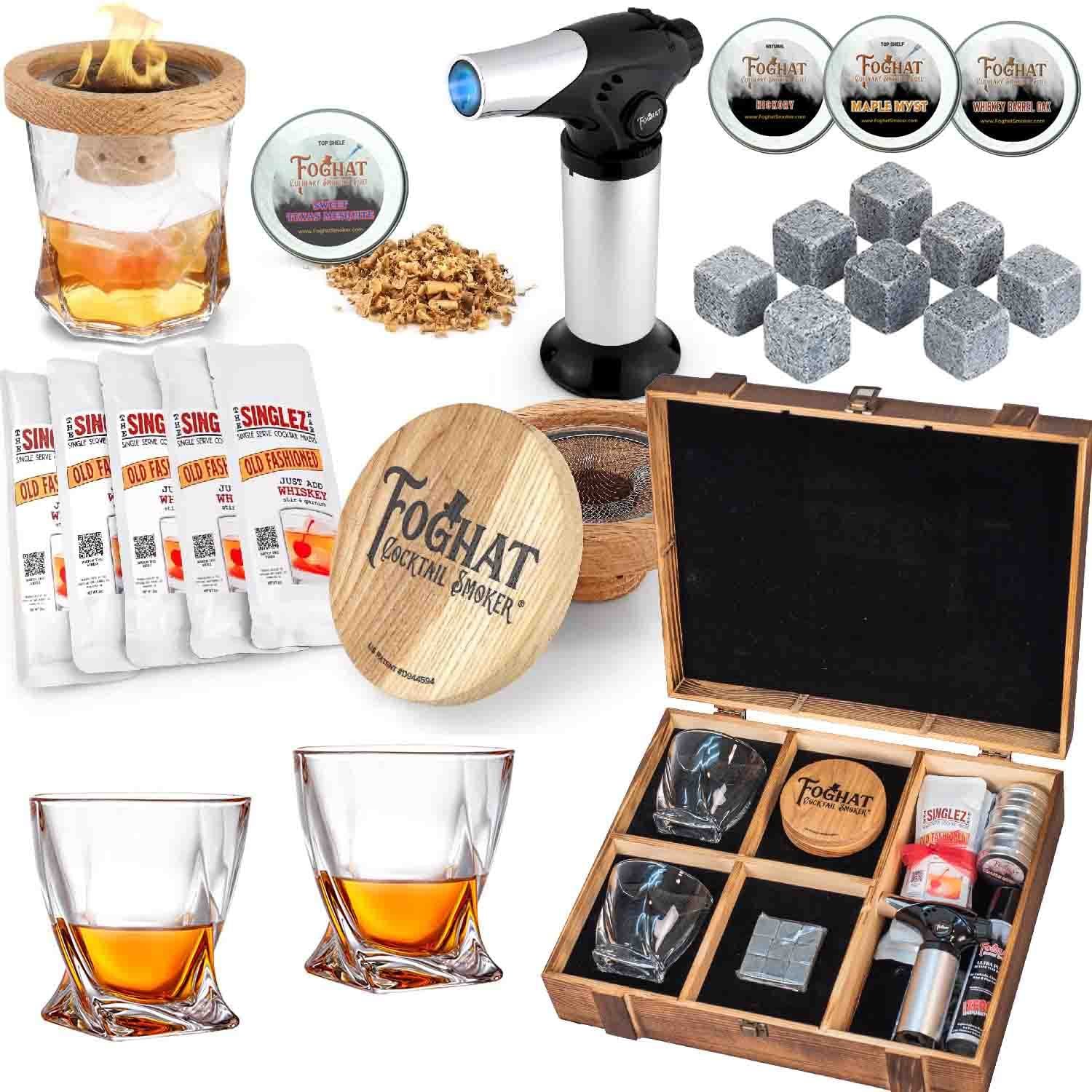 The FOGHAT COCKTAIL SMOKER Kit Gift Set is a great way to elevate the cocktail experience at home. The included smoker torch and refillable butane canister make it easy to use, and the selection of premium culinary wood chips allows for experimentation with different flavors and infusions.